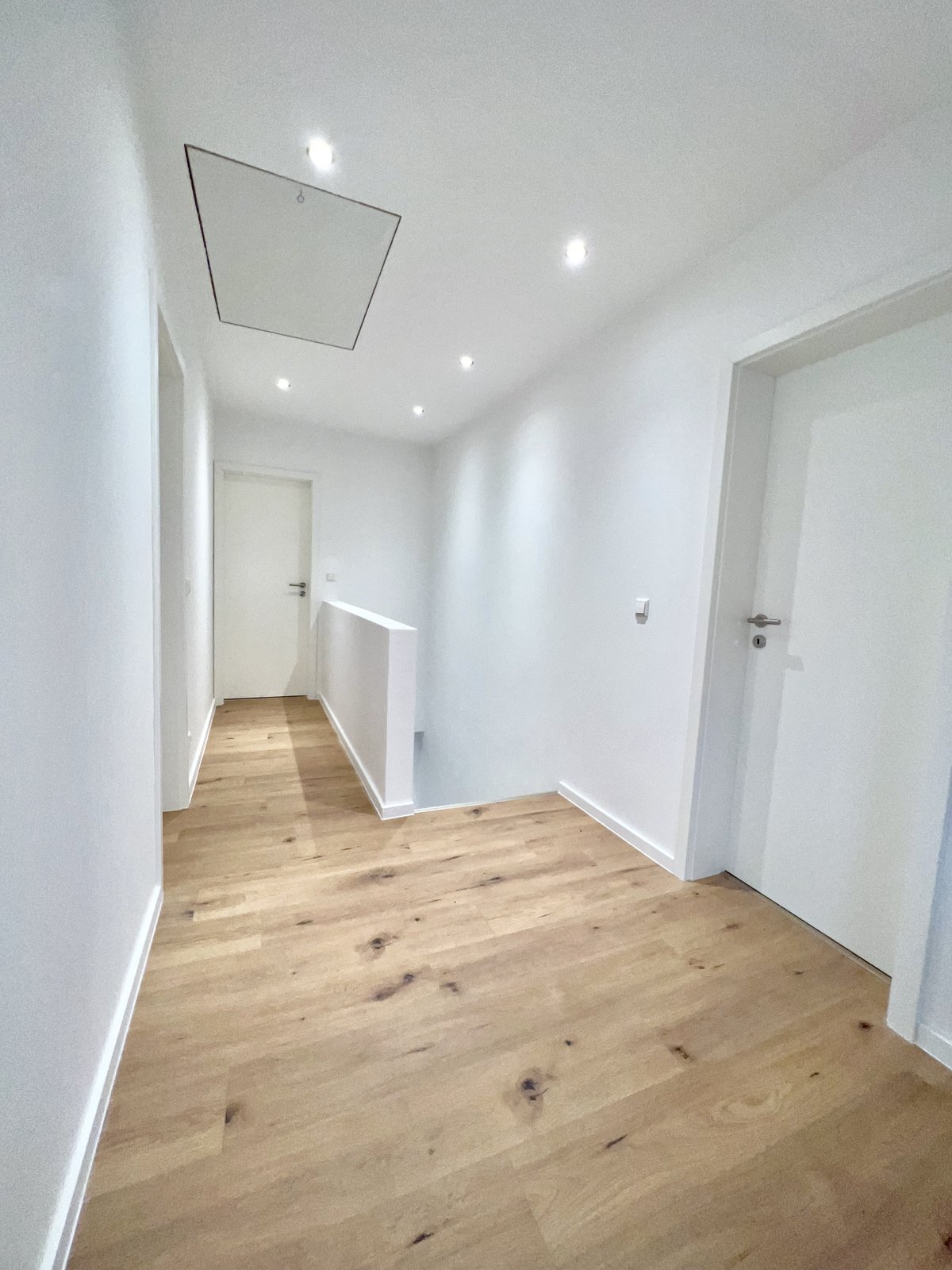 Die Zimmer, sowie der Flur sind mit hochwertigem Laminat in heller Eichenoptik auslegt.