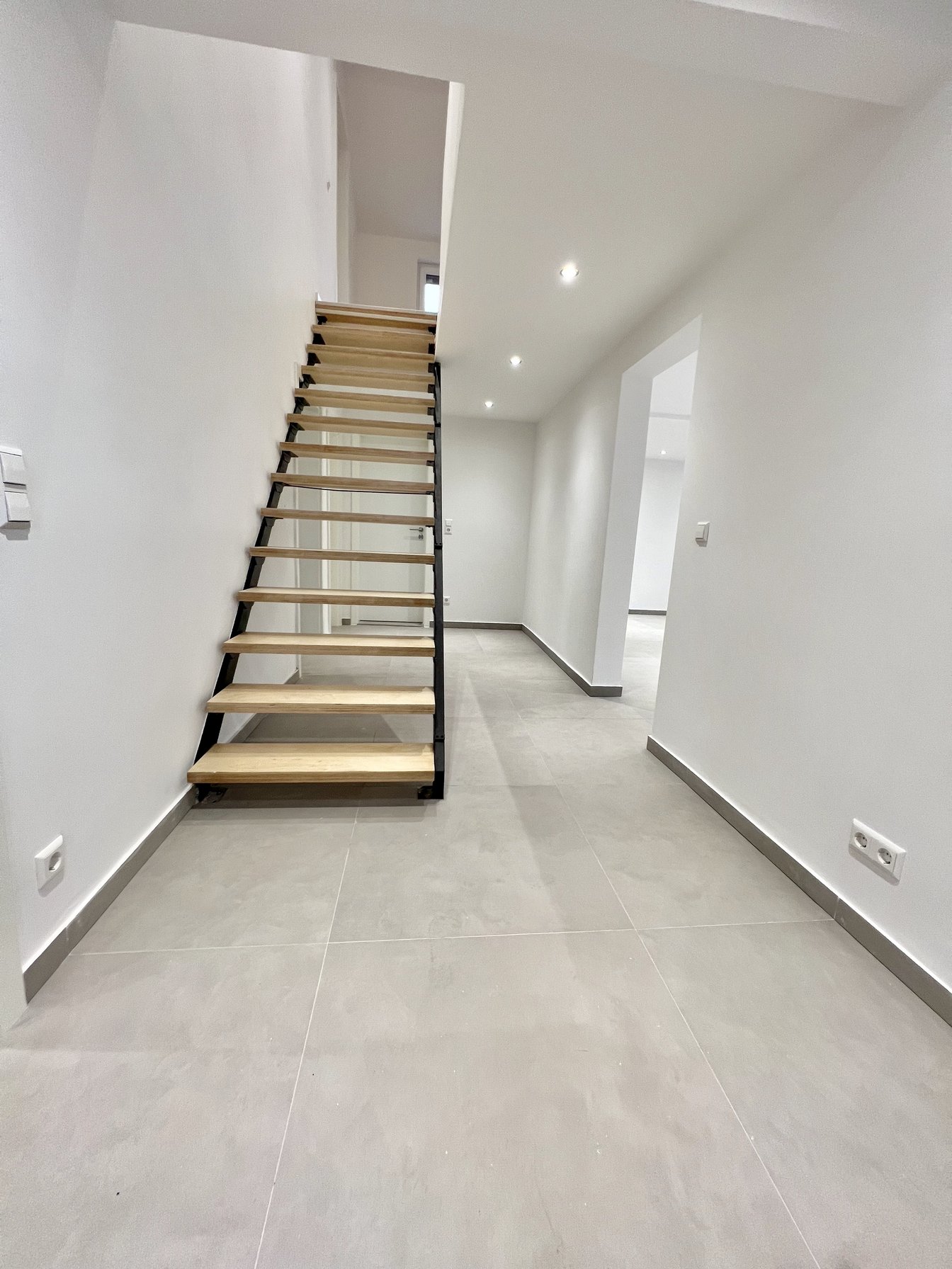 Im Erdgeschoss entstand ein großzügiger Wohn- und Essbereich. Hier könnte sich der Mittelpunkt Ihres Familienlebens befinden. Die Küche bietet ausreichend Platz für Ihre Kochabende. Außerdem befinden sich im Erdgeschoss ein Gäste-Wc sowie ein Hauswirtschaftsraum, welcher Ihnen zusätzlichen Stauraum bietet. Das gesamte Erdgeschoss ist mit hellen Fliesen in anthrazit und mit Fußbodenheizung ausgelegt.