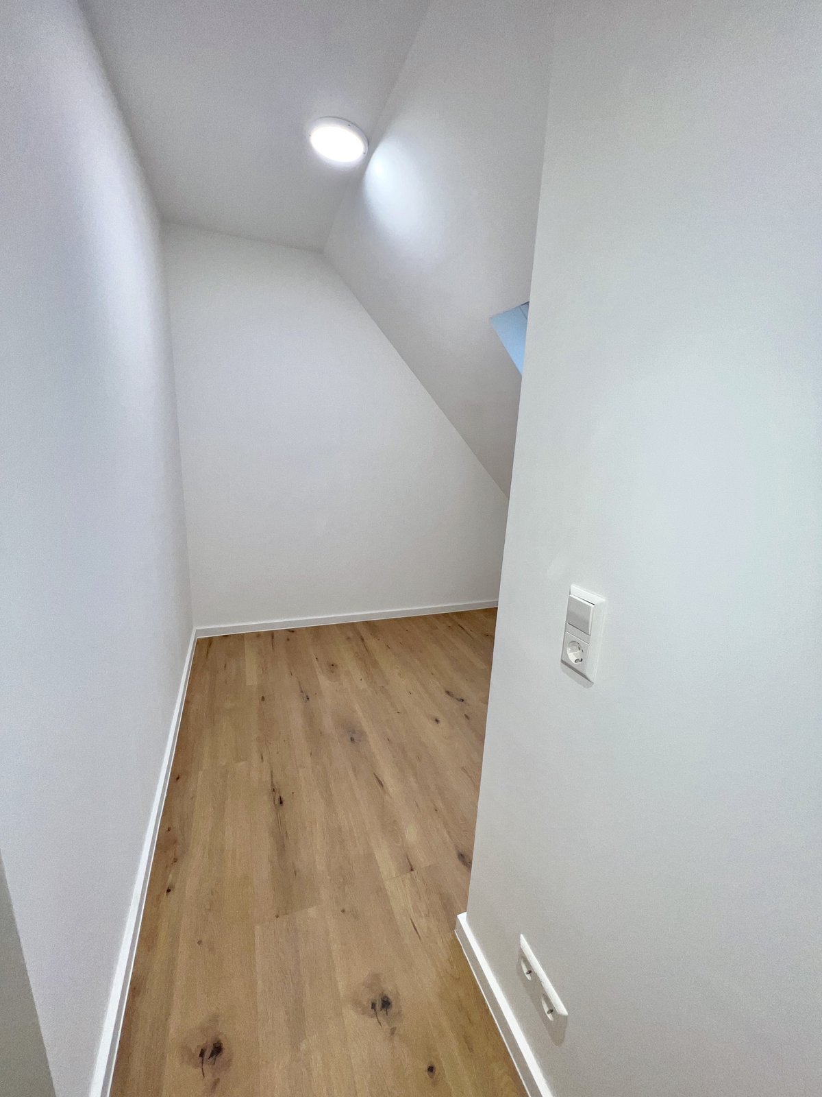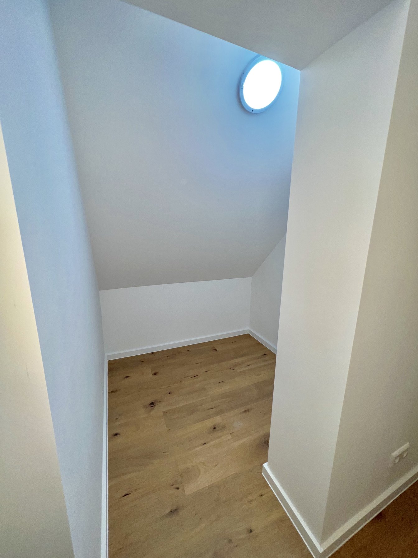 Im Obergeschoss sind zwei gemütliche Schlafzimmer entstanden. Beide Zimmer bieten eine begehbare Ankleide. Diese ist mit Lichtern ausgestattet, welche auf Bewegung reagieren und somit umfassenden Komfort bieten.