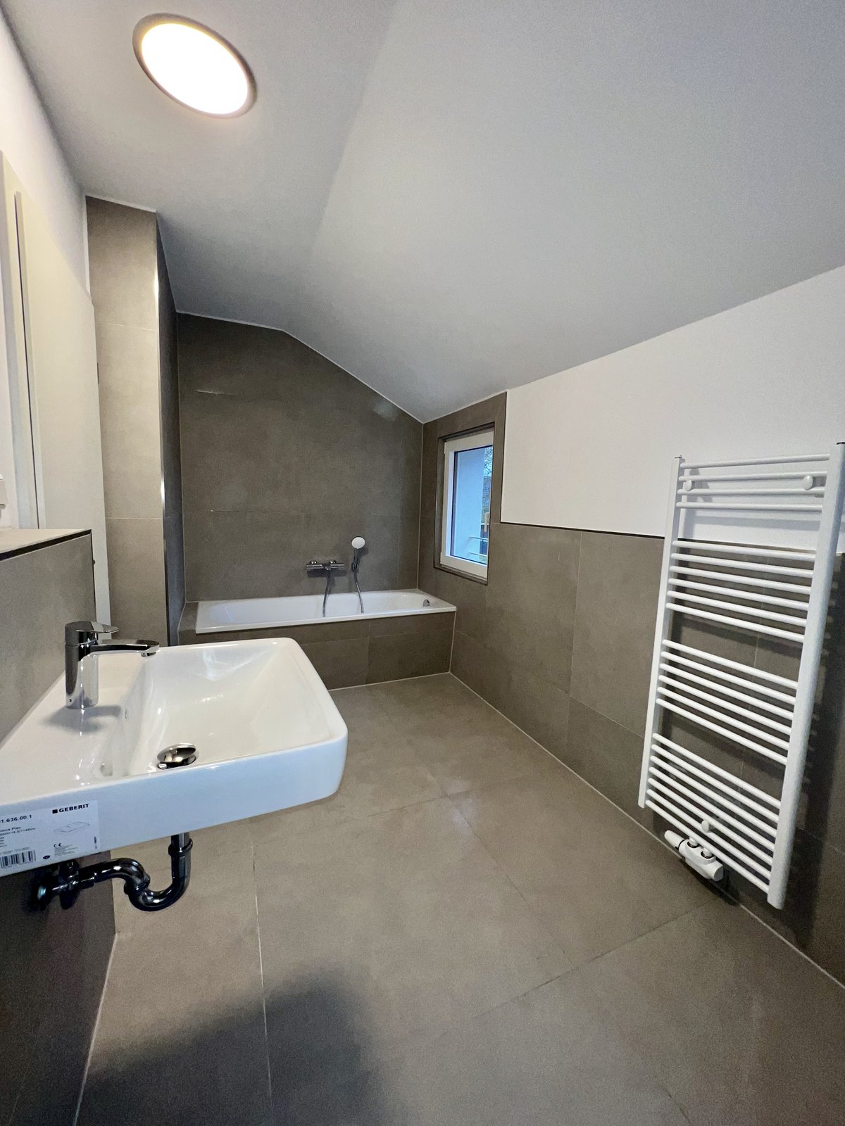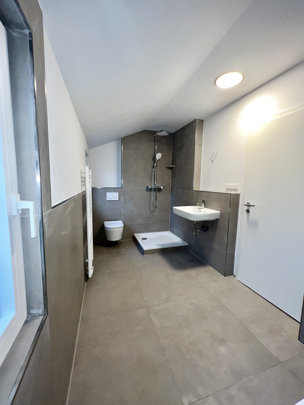 Im Badezimmer im Obergeschoss befinden sich eine Dusche, sowie eine Badewanne.