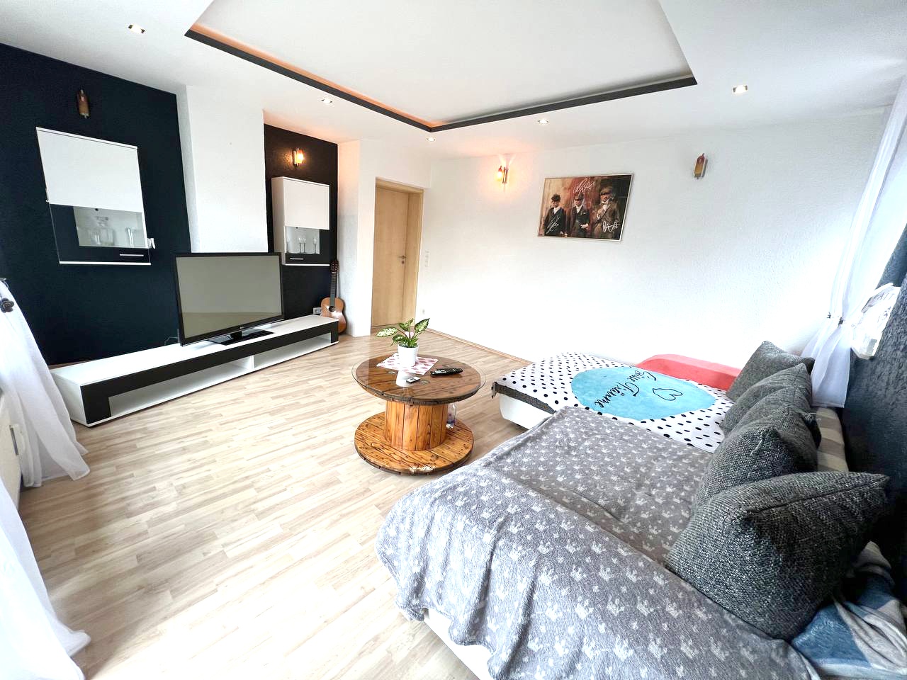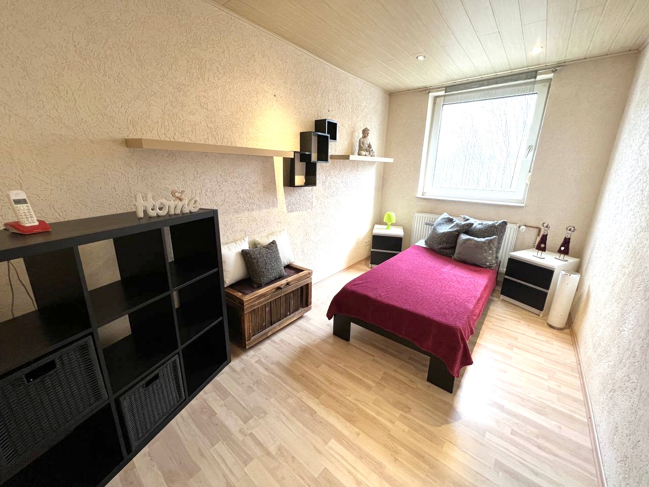Die zwei weiteren Wohnräume sind lichtdurchflutet und ebenfalls mit hellem Eichenlaminat ausgelegt.