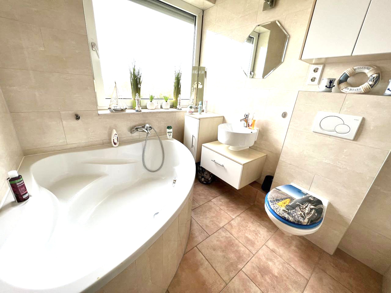 Das Bad ist 2015 erneuert wurden. Hierbei fand eine Eckbadewanne sowie eine Dusche Platz.